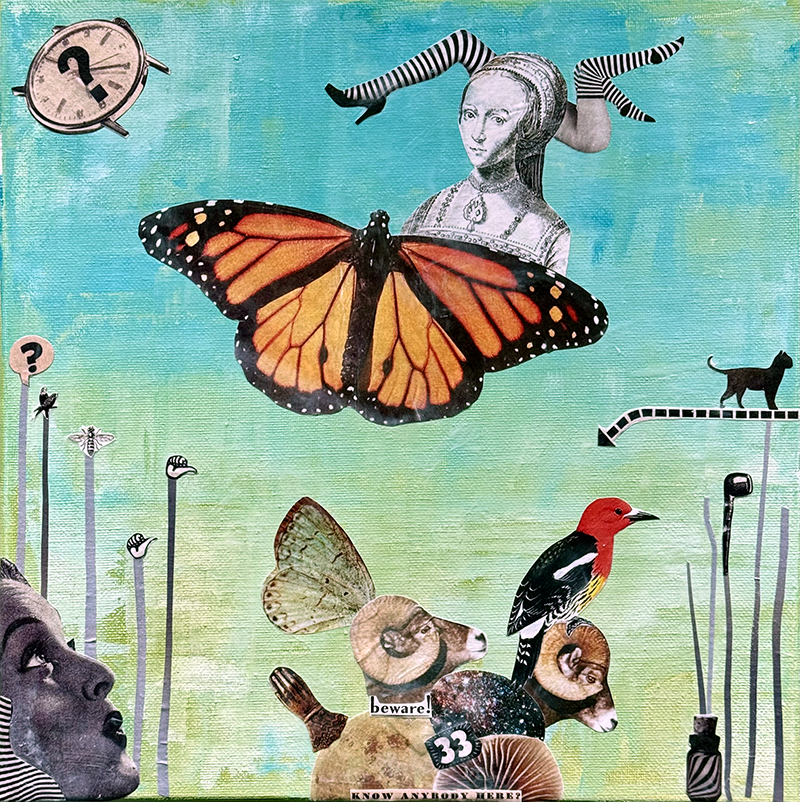 Acrylic & Collage on Wood, 2022, 12″ x 12″ x .5″